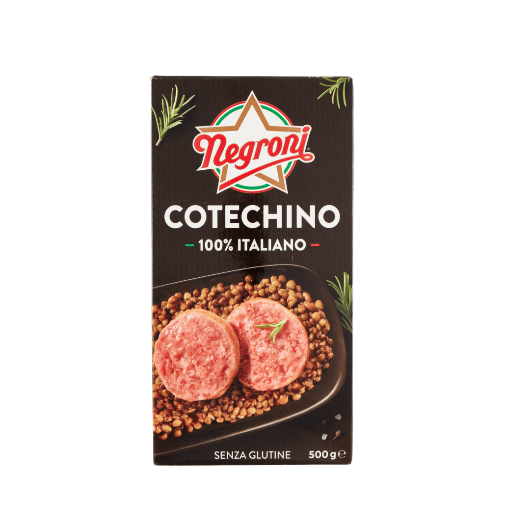 Hole Dir mit dem Cotechino von Negroni ein Stück echte italienische Esskultur nach Hause. Diese traditionelle, vorgegarte Wurstspezialität ist eine Ikone der italienischen Küche und gilt, besonders in Kombination mit Linsen serviert – als unverzichtbarer Glücksbringer für das Neujahrsfest.